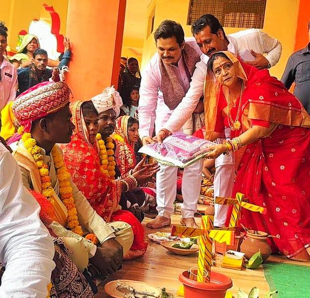 कार्यक्रम का आयोजन धार्मिक रीति-रिवाजों और पारंपरिक विधि-विधान के साथ किया गया। विवाह स्थल को आकर्षक रूप से सजाया गया था, जहां वर-वधू पक्ष के परिजन, जनप्रतिनिधि और स्थानीय नागरिक बड़ी संख्या में उपस्थित रहे। पूरे वातावरण में उत्साह और उल्लास का माहौल देखने को मिला। पंडितों द्वारा मंत्रोच्चारण के बीच सभी जोड़ों ने सात फेरे लेकर एक-दूसरे के साथ जीवनभर साथ निभाने का संकल्प लिया।