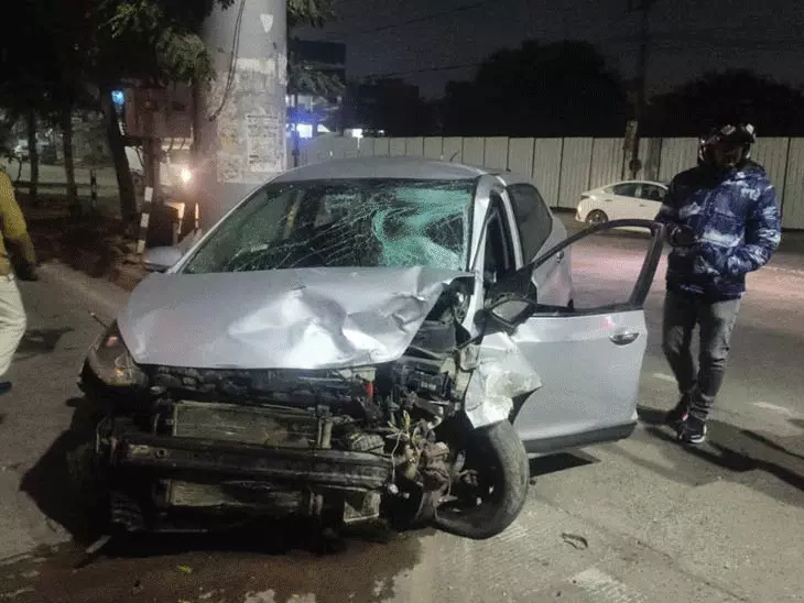 पहला हादसा: कार बिजली के पोल से टकराई