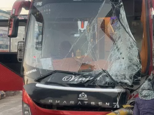 पहली घटना विजयनगर क्षेत्र की है, जहां रविवार सुबह करीब 5:30 बजे एक यात्री बस ट्रैफिक सिग्नल से जा टकराई। उदयपुर से भोपाल जा रही अशोक ट्रैवल्स की एसी स्लीपर बस अचानक नियंत्रण खो बैठी और सिग्नल पोल से टकरा गई। टक्कर इतनी तेज थी कि ट्रैफिक सिग्नल टूटकर सड़क पर गिर गया, वहीं बस के अगले हिस्से को भी नुकसान पहुंचा।