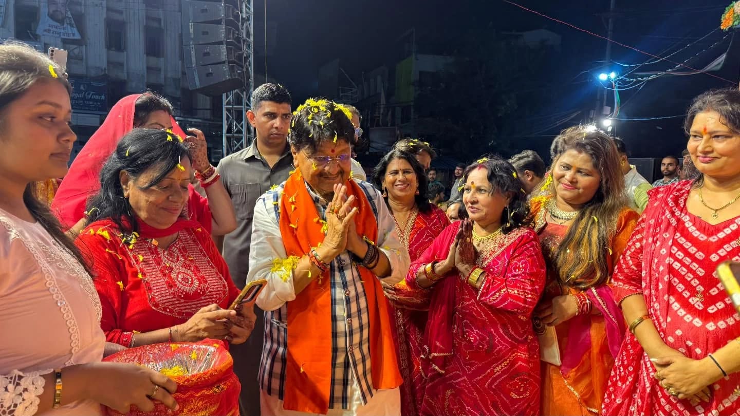 इसके बाद मंच पर पहुंचे प्रदेश के मंत्री कैलाश विजयवर्गीय। उन्होंने महिलाओं पर फूल बरसाए और फिर खुद माइक संभालकर भजन गाना शुरू किया। उनके सुरों ने जैसे ही वातावरण को छुआ, पूरा राजबाड़ा तालियों और जयकारों से गूंज उठा।