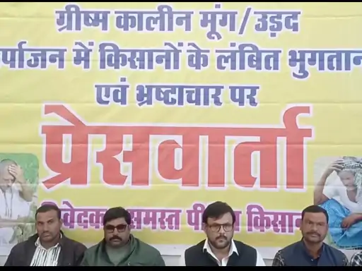 गर्मी की उड़द और मूंग फसलों के उपार्जन के बाद महीनों से भुगतान न मिलने से परेशान किसानों ने सोमवार को एक पत्रकार वार्ता आयोजित कर प्रशासन और संबंधित समितियों पर गंभीर आरोप लगाए। किसानों ने कहा कि उपार्जन को चार से पांच महीने बीत चुके हैं, लेकिन आज तक उनकी मेहनत की कमाई उन्हें नहीं मिल सकी है, जिससे वे भारी आर्थिक संकट का सामना कर रहे हैं।