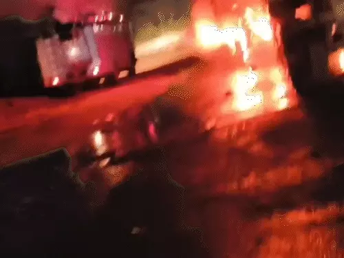 निवाड़ी जिले में सोमवार देर रात एक दर्दनाक सड़क हादसे ने सभी को झकझोर दिया। बड़े तालाब के पास सड़क किनारे खड़े ट्रॉले में पीछे से तेज रफ्तार डंपर जा घुसा। टक्कर इतनी भीषण थी कि दोनों वाहनों में तुरंत आग लग गई और डंपर के केबिन में फंसे ड्राइवर और क्लीनर जिंदा जल गए। लपटें इतनी तेज थीं कि दूर से ही आग का धुआं और रोशनी दिखाई दे रही थी।