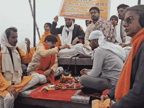 गंगा स्नान और शुद्धिकरण के बाद गणेश पूजन किया गया, इसके पश्चात हनुमान चालीसा का पाठ हुआ। इस दौरान अथर्व त्यागी के बाल भी मुंडवाए गए और तिलक लगाकर उन्हें सनातन धर्म में विधिवत प्रवेश कराया गया।