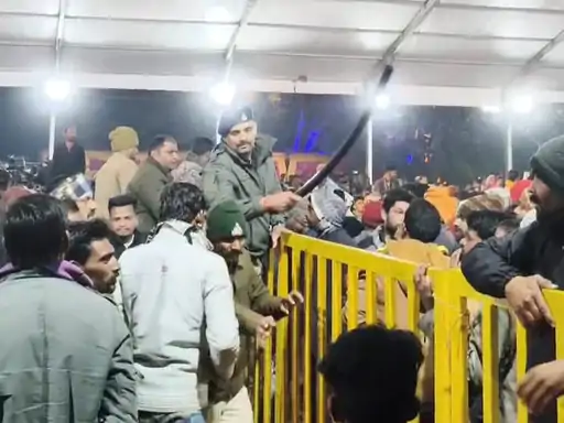 प्रत्यक्षदर्शियों के अनुसार, कार्यक्रम के बीच कुछ युवक बैरिकेड्स पर चढ़कर मंच के नजदीक पहुंचने का प्रयास करने लगे। देखते ही देखते अन्य लोग भी उनके साथ जुड़ गए। पुलिस द्वारा रोकने पर पहले नोकझोंक हुई, लेकिन जब भीड़ ने कुर्सियां तोड़ते हुए मंच की ओर बढ़ना जारी रखा, तो स्थिति और अधिक तनावपूर्ण हो गई।