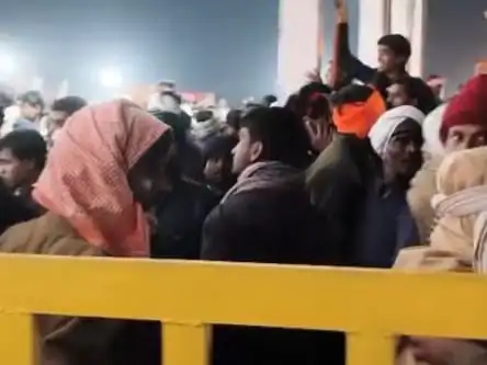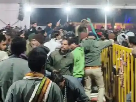 बैरिकेड्स तोड़ मंच की ओर बढ़ी भीड़