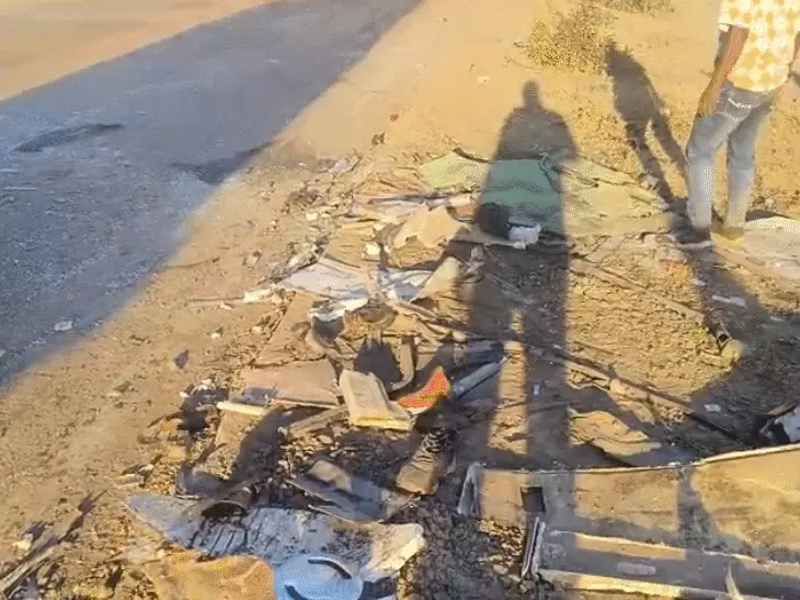 टक्कर इतनी जबरदस्त थी कि पुलिस वाहन के हिस्से दूर तक बिखर गए।