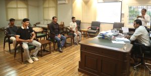 कलेक्टर श्री संदीप जी आर ने सोमवार को कलेक्टर कक्ष में बुल्गारिया में आयोजित होने जा रहे कूडो वर्ल्ड कप के लिए चयनित सागर के चार खिलाड़ियों से मुलाकात कर उन्हें शुभकामनाएं दीं। इस मौके पर उन्होंने कूडो खेल के प्रशिक्षण, तकनीक और भविष्य की योजनाओं पर विस्तार से चर्चा की। कलेक्टर ने कहा कि विश्व मंच पर जिले का नाम रोशन करने वाले खिलाड़ियों से जिले के विद्यार्थियों को भी प्रेरणा मिलेगी।