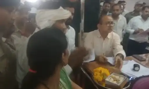 सागर (मध्य प्रशदेश)। सागर कलेक्टर कार्यालय में मंगलवार को हुई जनसुनवाई के दौरान एक अनोखा मामला सामने आया, जहाँ एक किसान ने अपनी पीड़ा को लेकर कलेक्टर को पूजा की थाली चढ़ा दी। थाली में नारियल, मिठाई और फूलमाला रखी थी। किसान ने यह थाली सीधे कलेक्टर संदीप जीआर की टेबल पर रख दी और अपनी समस्या बताई।