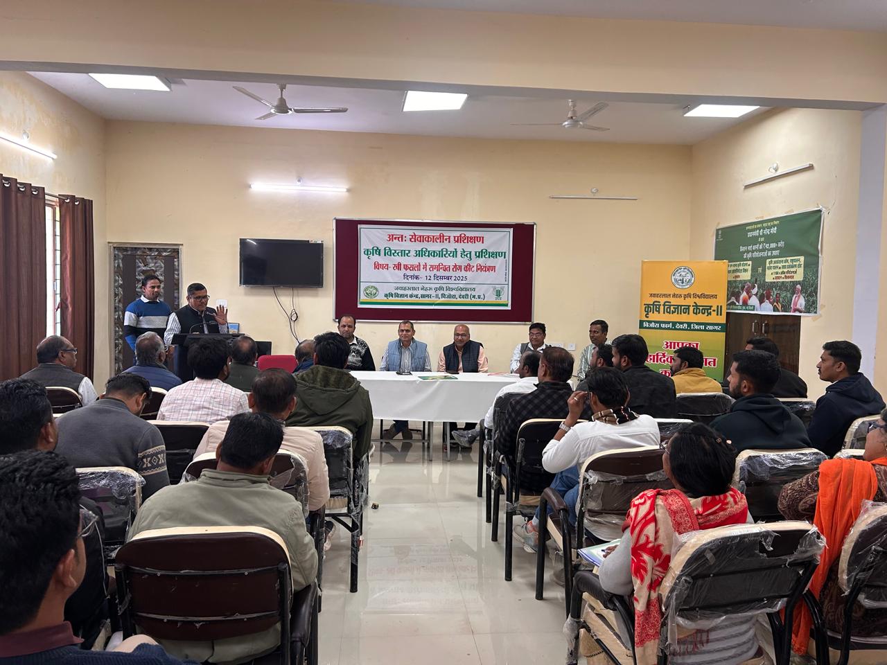 कृषि विज्ञान केंद्र, सागर (देवरी) द्वारा दिनांक 12 फरवरी 2025 को रहली, देवरी, केसली, जैसीनगर एवं राहतगढ़ विकासखंडों के कृषि विस्तार अधिकारियों के लिए रवि फसलों में पौध संरक्षण विषय पर एक दिवसीय प्रशिक्षण कार्यक्रम आयोजित किया गया। कार्यक्रम का उद्देश्य कृषि अधिकारियों को कीट-व्याधि प्रबंधन, प्राकृतिक एवं जैविक कृषि पद्धतियों की नवीन जानकारियों से अवगत कराना रहा।