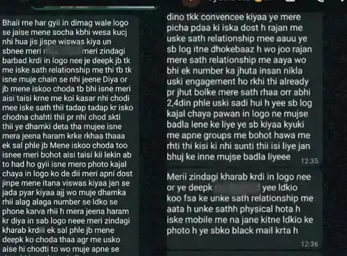 “भाई, मैं हार गई इन दिमाग वाले लोगों से… जिन्होंने मेरी जिंदगी बर्बाद कर दी। दीपक ने मुझे लगातार धमकाया और मेरी फोटो काजल और छाया को दे दी। राजन ने झूठ बोलकर मुझसे रिश्ता बनाया। अब मैं और नहीं जी सकती।”