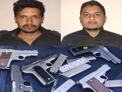 एक टीम ने ग्वालियर-झांसी बायपास स्थित सूरों बेहटा पुल के पास कच्चे रास्ते पर चेकिंग लगाई। इस दौरान MP-09-AH-9616 नंबर की रॉयल एनफील्ड बाइक पर सवार दो युवक पुलिस को देखकर भागने लगे। घेराबंदी कर पकड़े जाने पर एक आरोपी की कमर से पिस्टल और बैग से पांच पिस्टल व पांच मैग्जीन बरामद हुईं।