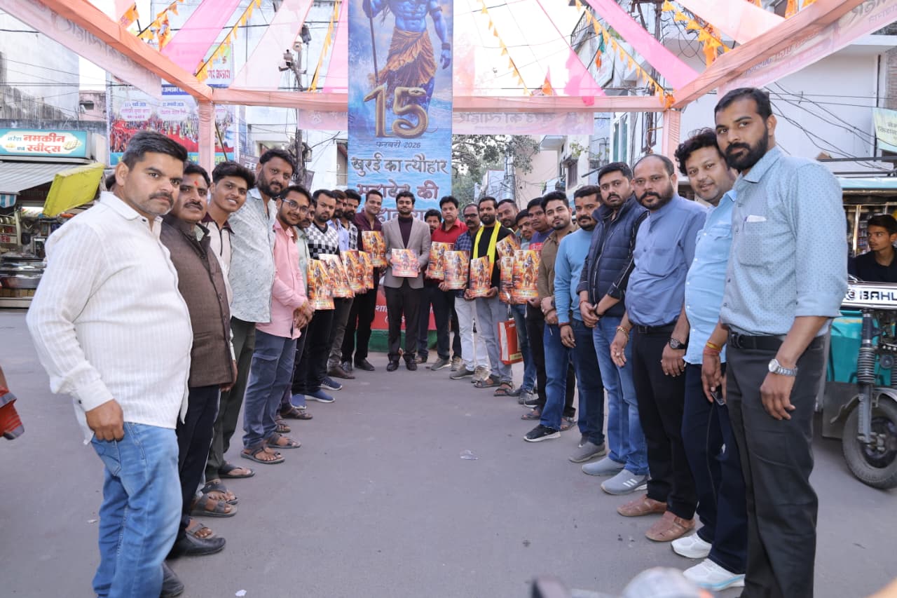 इस अवसर पर अविराज सिंह ने 15 फरवरी 2026 को सुबह 11 बजे भूतेश्वर मंदिर मुक्तिधाम खुरई से निकलने वाली महाकाल की महाबारात के आमंत्रण पत्रों का वितरण झंडा चौक के पास किया।