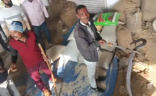 जानकारी के अनुसार, मंडी परिसर में स्थित राघव एंटरप्राइजेज दुकान पर शनिवार को किसान खाद और बीज खरीदने पहुंचे थे। इसी दौरान उनकी नजर दुकान में रखी खाद-बीज की बोरियों के बीच कुंडली मारकर बैठे सांप पर पड़ी। जैसे ही सांप दिखाई दिया, वहां हड़कंप मच गया। डर के मारे आसपास मौजूद किसान और हमाल इधर-उधर भागने लगे और कुछ लोग बोरियों के ऊपर चढ़ गए।