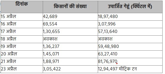 3 लाख से अधिक किसानों से 12.94 लाख मीट्रिक टन गेहूँ खरीदी, 1333 करोड़ से ज्यादा का भुगतान