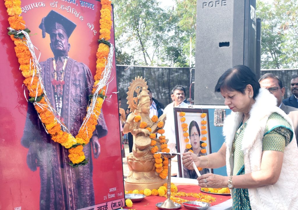 डॉ. हरीसिंह गौर विश्वविद्यालय की कुलपति डॉ. नीलिमा गुप्ता ने डॉ. गौर के जीवन के विभिन्न पहलुओं पर प्रकाश डाला। उन्होंने बताया कि डॉ. गौर एक महान शिक्षाविद, समाज सुधारक और विधि विशेषज्ञ थे। उनके संघर्षपूर्ण जीवन ने समाज में सुधार की दिशा में महत्वपूर्ण योगदान दिया। उन्होंने विद्यार्थियों से डॉ. गौर की कृतियों का अध्ययन करने और उनके आदर्शों पर चलने की अपील की। इसके साथ ही, डॉ. गुप्ता ने डॉ. गौर को भारत रत्न से सम्मानित किए जाने के लिए चल रहे हस्ताक्षर अभियान में भाग लेने की प्रेरणा दी।