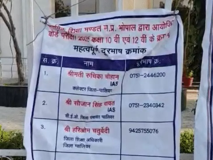 ग्वालियर के सभी परीक्षा केंद्रों पर बोर्ड लगाए गए हैं, जिन पर 10वीं और 12वीं परीक्षा के क्रमांक के अलावा महत्वपूर्ण अधिकारियों के फोन नंबर लिखे गए हैं। इसमें कलेक्टर रुचिका चौहान, सीईओ जिला पंचायत सौजान सिंह रावत और जिला शिक्षा अधिकारी हरिओम चतुर्वेदी के नंबर शामिल हैं। यह सुनिश्चित किया गया है कि किसी भी समय किसी परेशानी या आपात स्थिति में तुरंत संपर्क किया जा सके।
