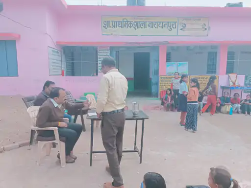 निरीक्षण के समय प्राथमिक शाला नारायणपुरा में पदस्थ कुल पांच शिक्षकों में से दो शिक्षक अवकाश पर पाए गए। वहीं शाला प्रभारी मोहनलाल मिश्रा निरीक्षण के दौरान अपनी टेबल पर तंबाकू और चूने की डिब्बी रखकर तंबाकू खाते हुए पाए गए, जिसे अधिकारियों ने गंभीर अनुशासनहीनता माना।