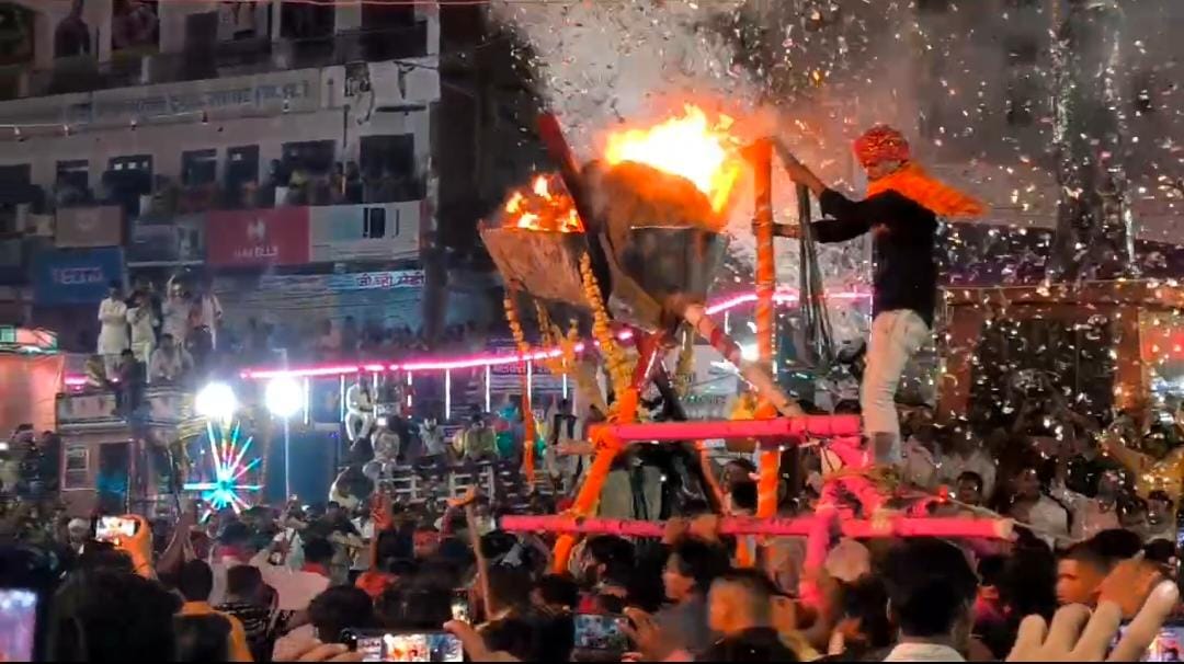 हर मोड़ पर पुष्पवर्षा की गई और पूरा माहौल भक्तिरस में सराबोर हो उठा। हजारों लोग इस अलौकिक दृश्य को देखने के लिए मार्ग पर जुटे और मोबाइल कैमरों में कैद करते रहे।