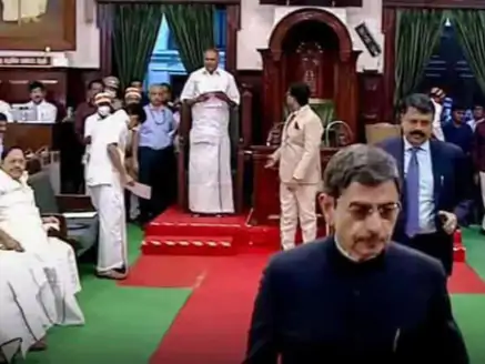 तमिलनाडु विधानसभा सत्र के दौरान मंगलवार को एक बार फिर राजनीतिक तनाव अपने चरम पर पहुंच गया। राज्यपाल आर.एन. रवि ने राष्ट्रगान के कथित अपमान का आरोप लगाते हुए बिना अपना निर्धारित भाषण पढ़े ही विधानसभा से वॉकआउट कर दिया। इस घटनाक्रम से सदन में हंगामे की स्थिति बन गई और सत्तापक्ष व विपक्ष आमने-सामने आ गए।