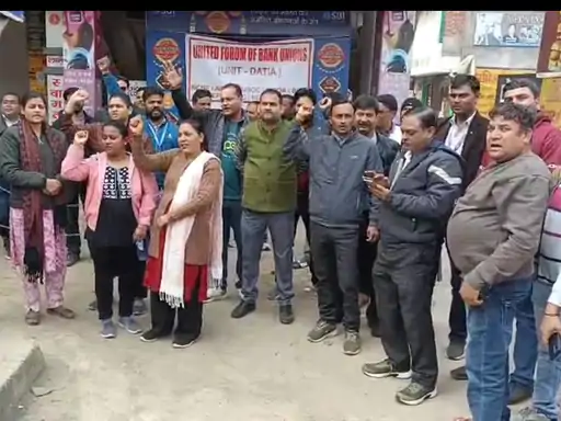 दतिया जिले में मंगलवार को बैंक कर्मचारियों ने यूनाइटेड फोरम ऑफ बैंक यूनियंस (UFBU) के आह्वान पर हड़ताल की। जिले के विभिन्न बैंकों में कार्यरत अधिकारी और कर्मचारी हड़ताल पर रहने के कारण पूरे दिन बैंकिंग सेवाएं बाधित रहीं। हड़ताल के चलते शाखाओं में लेनदेन, चेक क्लियरेंस, नकद जमा-निकासी और अन्य जरूरी बैंकिंग कामकाज नहीं हो सका। सुबह से ही बैंक शाखाओं के बाहर सन्नाटा पसरा रहा, जिससे आम उपभोक्ताओं को भारी असुविधा का सामना करना पड़ा।