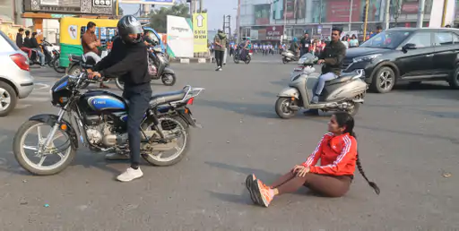 अव्यवस्था के बीच एक बाइक सवार ने दौड़ रही एक युवती को टक्कर मार दी। युवती सड़क पर गिरकर घायल हो गई। प्रत्यक्षदर्शियों के मुताबिक, टक्कर के बाद कुछ देर अफरा-तफरी मच गई। मौके पर मौजूद लोगों ने युवती को संभाला।