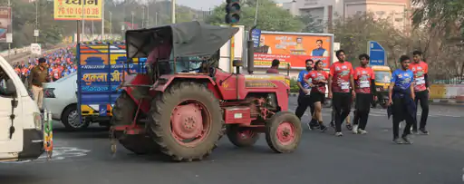 धावकों के बीच से गुजरते वाहन