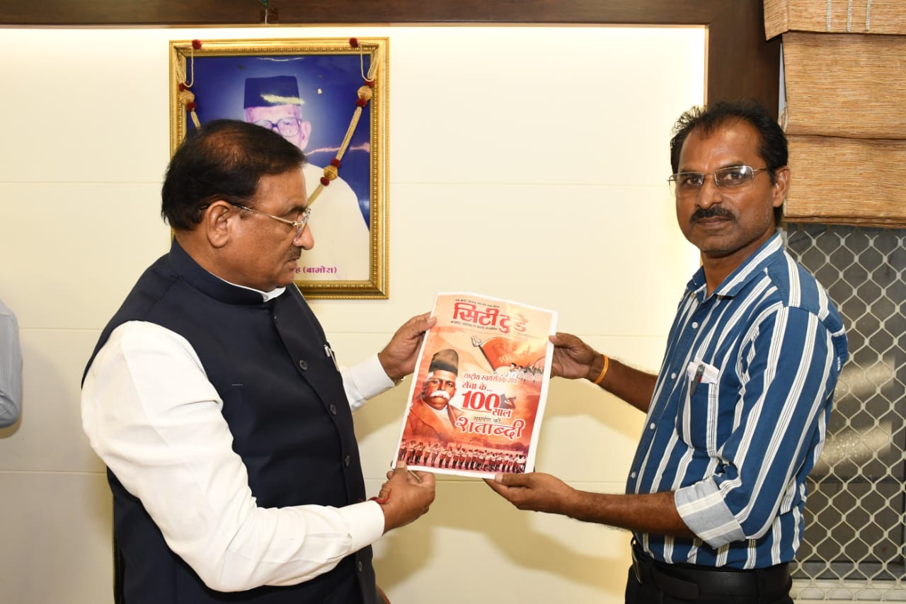 इसी दौरान एक विशेष क्षण में राष्ट्रीय स्वयंसेवक संघ की स्थापना के 100 वर्ष पूर्ण होने पर सिटी टुडे द्वारा प्रकाशित विशेषांक “सेवा और समर्पण की शताब्दी” की प्रति प्रदेश टुडे के स्थानीय प्रतिनिधि दिनेश परिहार ने भूपेन्द्र सिंह को भेंट की। श्री सिंह ने इस प्रकाशन की सराहना करते हुए कहा कि आरएसएस देश की सेवा, राष्ट्रप्रेम और संस्कृति संरक्षण का जीवंत प्रतीक है, और इसका शताब्दी वर्ष समाज के लिए प्रेरणास्पद है।