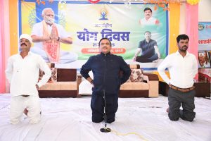 बांदरी। अंतरराष्ट्रीय योग दिवस की प्रातः बेला में यहां के आडिटोरियम में पूर्व गृहमंत्री, खुरई विधायक श्री भूपेन्द्र सिंह ने स्वयं योग प्रशिक्षक के रूप में शासकीय महाविद्यालय बांदरी के विद्यार्थियों व स्थानीय नागरिकों को योगाभ्यास, आसन, प्राणायाम व सूर्य-नमस्कार का अभ्यास कराया। इस अवसर पर अपने संबोधन में उन्होंने कहा कि योग भारत के ज्ञान , आध्यात्म और सांस्कृतिक परंपरा की प्राचीन धरोहर है जिसको प्रधानमंत्री श्री नरेन्द्र मोदी जी ने विशेष प्रयासों से संयुक्त राष्ट्र परिषद के माध्यम से अंतरराष्ट्रीय योग दिवस के रूप में घोषित कराया है।