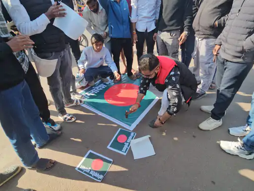 छतरपुर शहर में गुरुवार को बांग्लादेश में हिंदुओं पर हो रहे कथित अत्याचारों और हालिया हत्याओं के विरोध में जबरदस्त आक्रोश देखने को मिला। आक्रोशित युवाओं और नागरिकों ने प्रतीकात्मक विरोध दर्ज कराते हुए बांग्लादेश के झंडे का पोस्टर पहले टॉयलेट में चिपकाया और फिर उसे सड़क पर बिछाकर पैरों, जूते-चप्पलों और वाहनों से रौंदा। प्रदर्शनकारियों ने इसे अपना गुस्सा और विरोध जताने का माध्यम बताया।