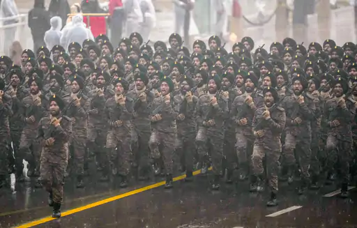 नई दिल्ली के कर्तव्य पथ पर शुक्रवार को गणतंत्र दिवस परेड की फुल ड्रेस रिहर्सल आयोजित की गई। इस दौरान मौसम ने परीक्षा जरूर ली, लेकिन बारिश के बावजूद सेना के जवानों के हौसले और अनुशासन में कोई कमी नहीं दिखी। हल्की से मध्यम बारिश के बीच भारतीय सेना, अर्धसैनिक बलों और अन्य सुरक्षा एजेंसियों के जवानों ने सटीक कदमताल करते हुए मार्च पास्ट किया।