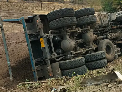 - हाइवा रेत से भरा हुआ था, जिससे उसका नियंत्रण बिगड़ गया और वह पलट गया।