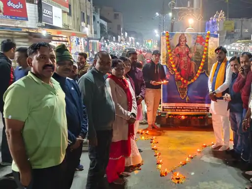 कार्यक्रम स्थल को विशेष रूप से सजाया गया। भारत माता की प्रतिमा का फूलों से श्रृंगार किया गया, चारों तरफ दीपमालाएं जलाई गईं और जमीन पर आकर्षक रंगोलियां बनाई गईं। रात की रोशनी और देशभक्ति गीतों ने माहौल को भक्तिमय बना दिया।