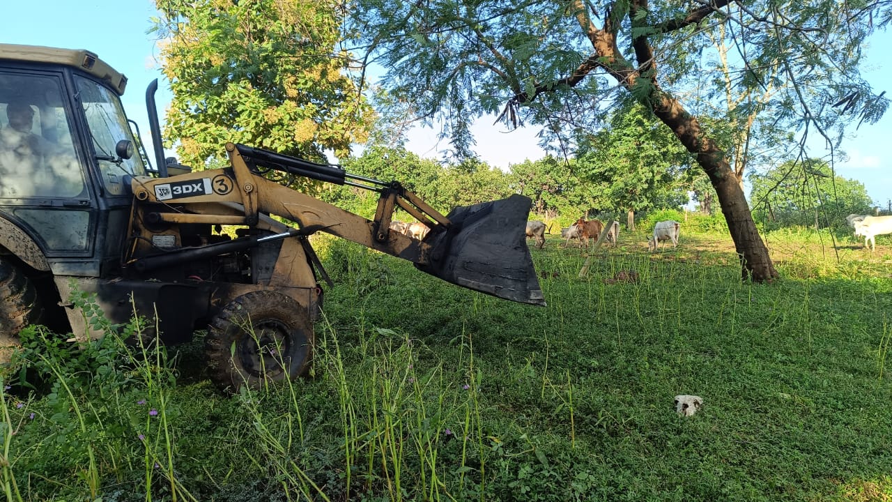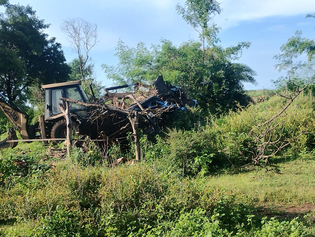 - जमीन पर बने फेंसिंग और टपरों को जेसीबी मशीन के माध्यम से हटाया गया।