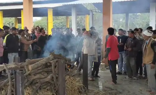 मुक्तिधाम पहुंचकर बड़ी बेटी साधना वाल्मीकि ने रीति-रिवाजों के साथ अपने पिता को मुखाग्नि दी।