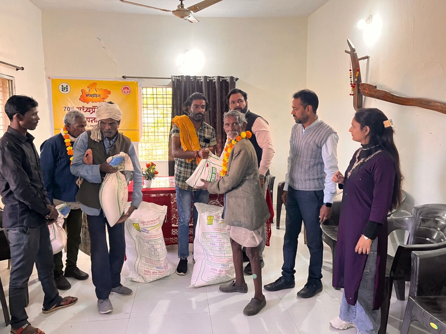 बीना, सागर: भगवान बिरसा मुंडा की जयंती के अवसर पर बीना विकासखण्ड के अंतर्गत आने वाले विभिन्न ग्रामों में जनजातीय समुदाय के किसानों के लिए विशेष कार्यक्रम का आयोजन किया गया। इस अवसर पर किसानों को निःशुल्क मसूर बीज की मिनी किट वितरित की गई। कार्यक्रम का उद्देश्य किसानों को आधुनिक और वैज्ञानिक पद्धतियों से खेती करने के प्रति प्रेरित करना था।