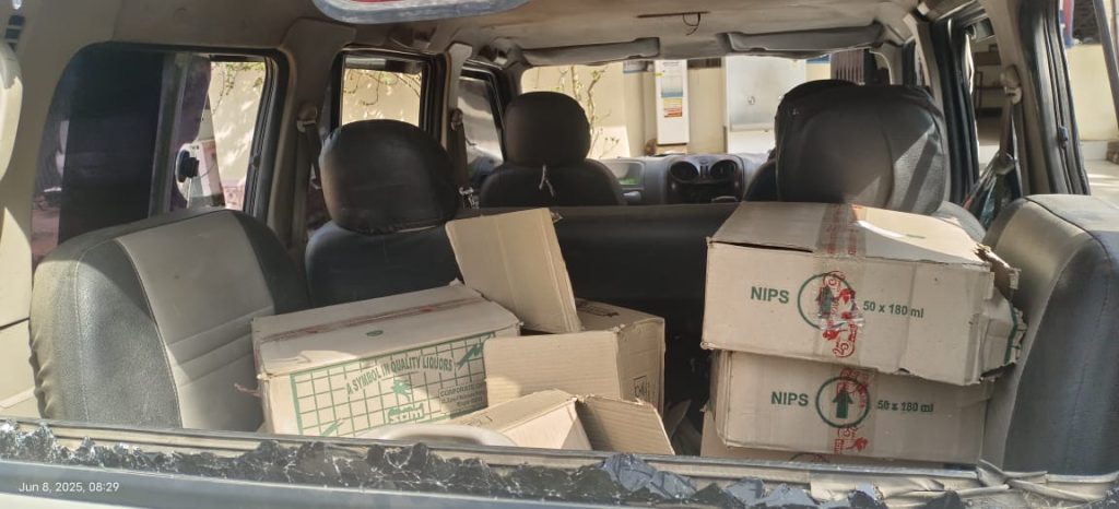 पुलिस ने जब वाहन की तलाशी ली तो उसमें से 11 पेटी देशी शराब बरामद की गई, जिसमें कुल 90 लीटर शराब पाई गई। इस अवैध शराब को गाड़ी की सीटों और डिक्की में छिपाकर रखा गया था।