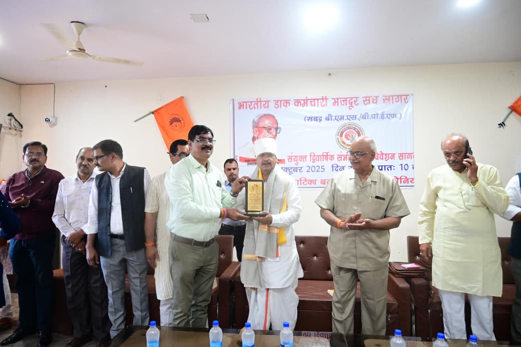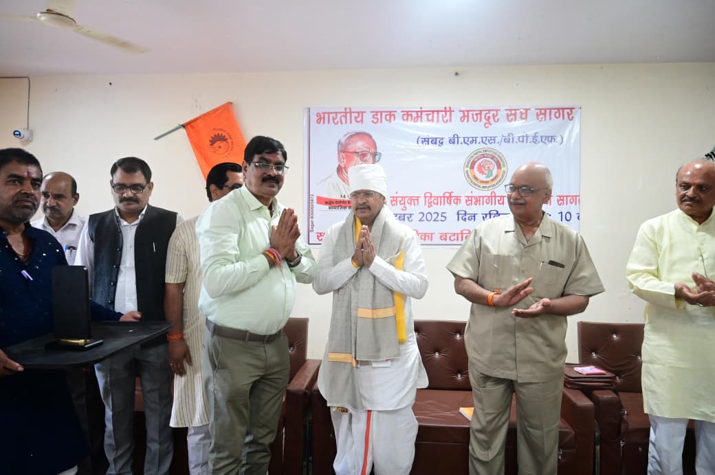 मकरोनिया स्थित वैदिक वाटिका में रविवार को भारतीय डाक कर्मचारी संघ एवं भारतीय मजदूर संघ का संभागीय अधिवेशन बड़े उत्साह और अनुशासन के साथ सम्पन्न हुआ। कार्यक्रम में मुख्य अतिथि के रूप में सागर विधायक शैलेन्द्र कुमार जैन उपस्थित रहे, जिन्होंने अपने प्रेरक उद्बोधन से कर्मचारियों में नई ऊर्जा का संचार किया।