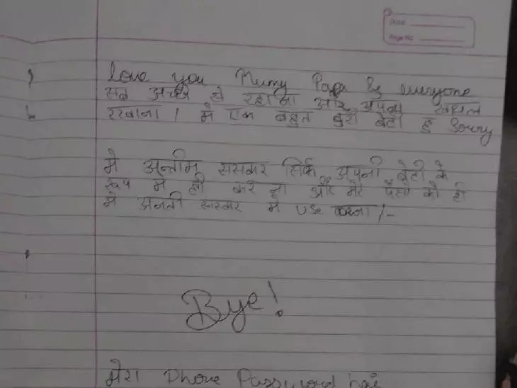 सुसाइड नोट को पुलिस ने जब्त कर हैंडराइटिंग की जांच के लिए भेज दिया है।