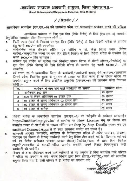 आबकारी विभाग ने साफ किया है कि यह गाइडलाइन केवल लाइसेंस प्रक्रिया को सरल बनाने और नियंत्रित तरीके से शराब के वितरण को सुनिश्चित करने के लिए है।