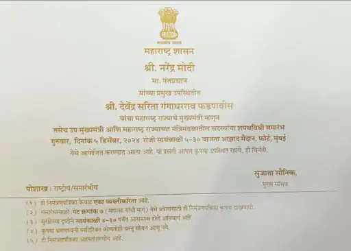 महाराष्ट्र मुख्यमंत्री के शपथ ग्रहण का इन्विटेशन कार्ड
