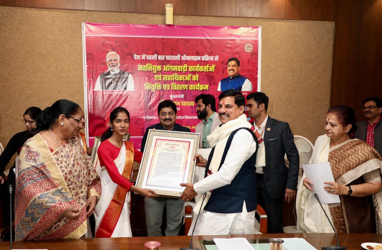 विशेष रूप से, मुख्यमंत्री ने आंगनवाड़ी कार्यकर्ताओं और सहायिकाओं के लिए देश में पहली बार ऑनलाइन पारदर्शी नियुक्ति प्रणाली लागू करने का ऐलान किया। सागर विधानसभा सभाकक्ष में आयोजित कार्यक्रम में नवनियुक्त 12,075 आंगनवाड़ी कार्यकर्ताओं और सहायिकाओं को नियुक्ति पत्र वितरित किए गए। लगभग 4 लाख आवेदनों में से चयन पूरी तरह मेरिट आधारित और पारदर्शी प्रक्रिया से हुआ। नवनियुक्तों को मासिक मानदेय के रूप में लगभग 14 करोड़ रुपये का वितरण होगा।