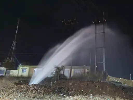 • पाइपलाइन का दबाव इतना अधिक था कि पानी बिजली पोल और लाइन तक छूने लगा।