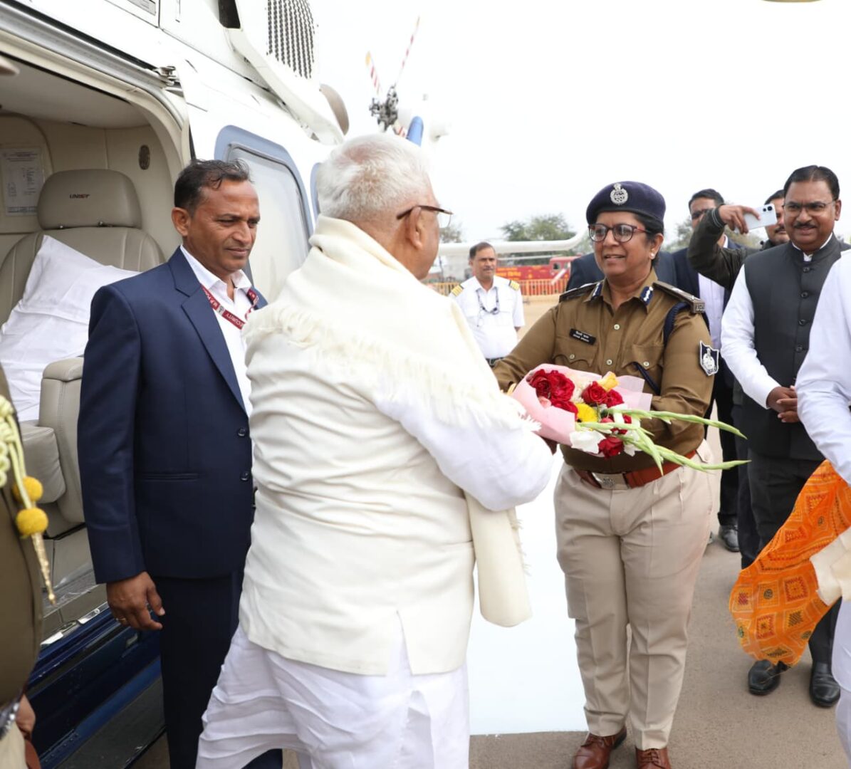 हेलीपैड पर भव्य स्वागत