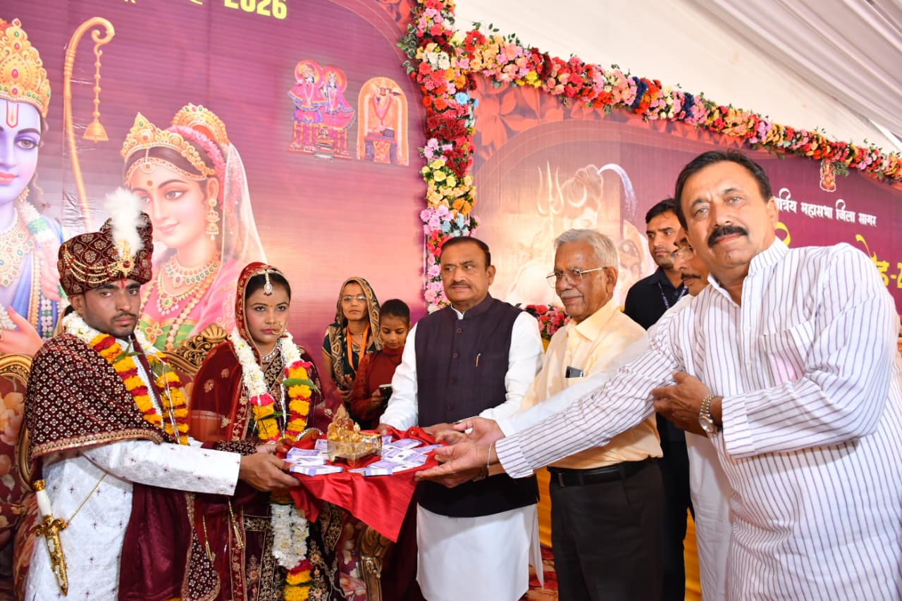 रुद्राक्ष धाम मंदिर प्रांगण में क्षत्रिय महासभा जिला सागर द्वारा आयोजित कन्या विवाह समारोह-2026 एक भव्य एवं ऐतिहासिक आयोजन के रूप में संपन्न हुआ। अक्षय तृतीया के पावन अवसर पर आयोजित इस समारोह में कुल 18 जोड़ों का विधिवत विवाह संपन्न कराया गया। पूरे आयोजन स्थल को पारंपरिक रीति-रिवाजों, सांस्कृतिक परंपराओं और आधुनिक व्यवस्थाओं के समन्वय से भव्य स्वरूप प्रदान किया गया।