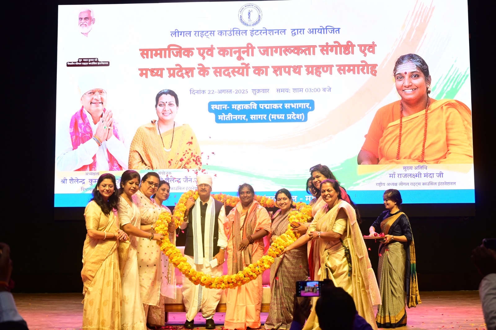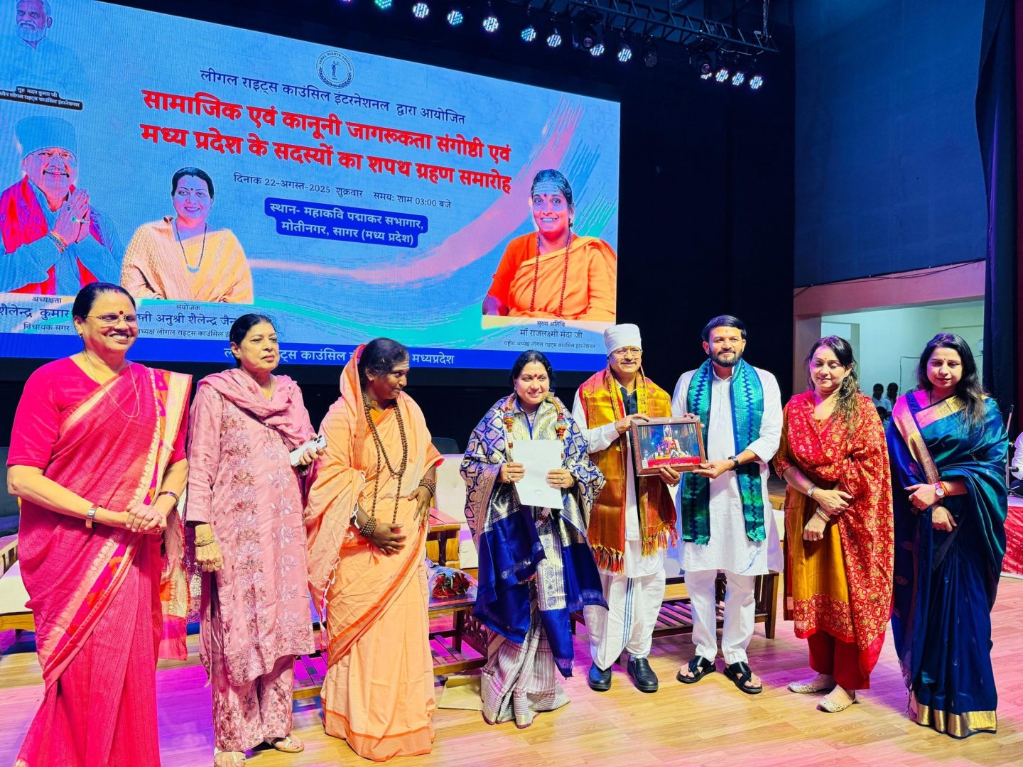 सागर। समाज उत्थान और मानवाधिकारों के क्षेत्र में कार्यरत अंतरराष्ट्रीय संस्था लीगल राइट्स काउंसिल इंटरनेशनल का “सामाजिक एवं कानूनी जागरूकता संगोष्ठी एवं मध्यप्रदेश के सदस्यों का शपथग्रहण समारोह” सागर के महाकवि पद्माकर सभागार, मोतीनगर में भव्य रूप से संपन्न हुआ।