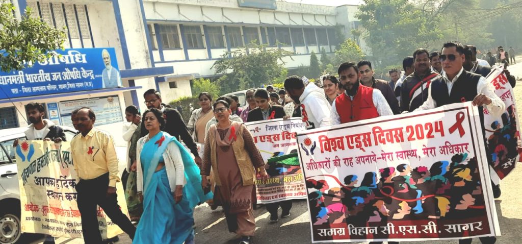 विश्व एड्स दिवस के अवसर पर जिला चिकित्सालय सागर में जन जागरूकता रैली का आयोजन किया गया। रैली को क्षेत्रीय संचालक स्वास्थ्य सेवाएं सागर संभाग, डॉ. ज्योति चौहान और मुख्य चिकित्सा स्वास्थ्य अधिकारी, डॉ. ममता तिमोरी ने हरी झंडी दिखाकर रवाना किया। इस रैली का उद्देश्य एड्स और एचआईवी के प्रति जागरूकता फैलाना और समाज को इस बीमारी के प्रति सतर्क करना था।