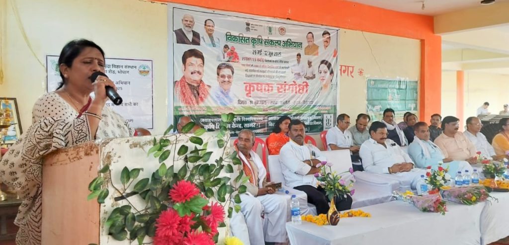 कार्यक्रम की मुख्य अतिथि, सागर सांसद श्रीमती लता वानखेड़े ने अपने संबोधन में कहा कि “खेती से आय बढ़ाने के लिए अब जरूरी है कि किसान वैज्ञानिक दृष्टिकोण अपनाएं। इससे न केवल समय और श्रम की बचत होगी, बल्कि बीज की खपत घटेगी, उत्पादन बढ़ेगा और भूमि की उर्वरता भी सुरक्षित रहेगी।” उन्होंने कहा कि भारत सरकार और प्रदेश सरकार मिलकर किसानों के कल्याण के लिए अनेक योजनाएं चला रही हैं, जिनका लाभ सभी किसानों को लेना चाहिए।
