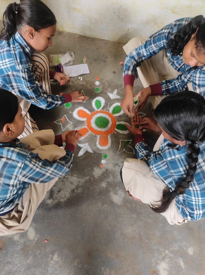 कार्यक्रम के तहत विद्यालय परिसर में चित्रकला प्रतियोगिता और राखी निर्माण जैसी रचनात्मक गतिविधियाँ आयोजित की गईं, जिनमें प्राथमिक स्तर के बच्चों ने उत्साहपूर्वक भाग लेकर अपनी प्रतिभा और देशप्रेम का प्रदर्शन किया। बच्चों ने तिरंगे के तीन रंगों को केंद्र में रखते हुए भारत माता, स्वतंत्रता सेनानियों, और राष्ट्रीय प्रतीकों पर आधारित मनमोहक चित्र बनाए। उनके चित्रों में गांधी जी की लाठी, भगत सिंह की टोपी, अशोक चक्र की झलक और सुभाष चंद्र बोस का साहस साफ दिखाई दिया।