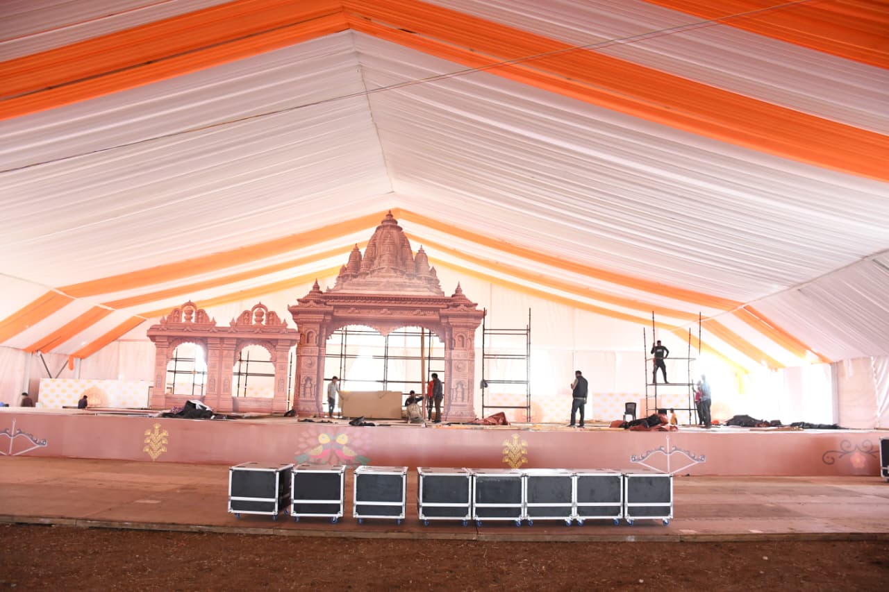 आयोजन स्थल के लिए 15 एकड़ भूमि का उपयोग किया गया है। अंतरराष्ट्रीय प्रसिद्ध पंडित पं. प्रेमभूषण जी महाराज द्वारा प्रतिदिन राम कथा का वाचन किया जाएगा, जिसमें एक लाख से अधिक श्रद्धालु सुविधा जनक रूप से बैठ सकेंगे। कथा पंडाल के लिए रुद्राक्ष धाम के सामने वाटरप्रूफ आधुनिक डोम बनाया गया है और पंडाल में 14 बड़ी LED स्क्रीन लगाई गई हैं, ताकि पीछे बैठे श्रद्धालु भी कथा का आनंद ले सकें।