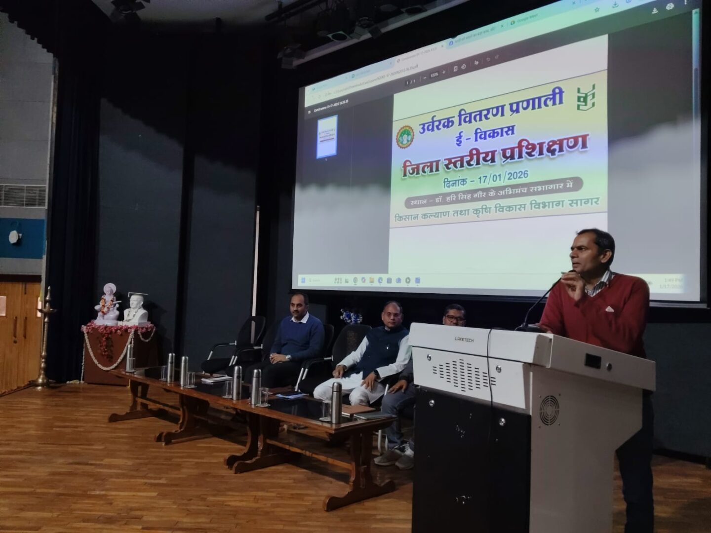 कलेक्टर संदीप जी.आर. के निर्देशन में जिले में उर्वरक वितरण की नई व्यवस्था ई-विकास प्रणाली को प्रभावी रूप से लागू करने के उद्देश्य से 17 जनवरी 2026 को डॉ. हरि सिंह गौर विश्वविद्यालय के अभिमंच सभागार में एक दिवसीय प्रशिक्षण कार्यक्रम का आयोजन किया गया। यह प्रशिक्षण कृषि कल्याण तथा कृषि विकास विभाग द्वारा आयोजित किया गया, जिसमें जिले के समस्त इनपुट डीलर्स को ई-विकास प्रणाली के माध्यम से उर्वरक वितरण की प्रक्रिया की विस्तृत जानकारी दी गई।